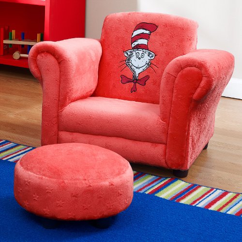 I highly recommendTrend Lab Dr Seuss Velour Cat In The Hat Chair and Ottoman, Red