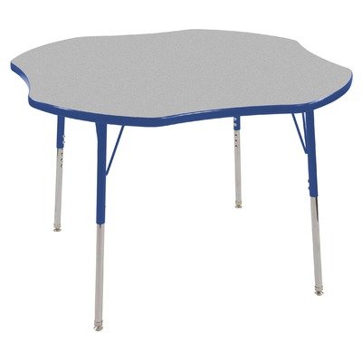 Best Buy 48 Clover Shaped Adjustable Activity Table in Gray Edge Banding: Blue, Leg Color: Blue, Leg Style: Standard Leg Standard Nylon Glides